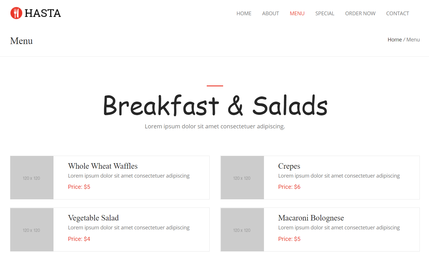 This is the html template for the restaurant. The template is made by CSS. The loading speed is fast.